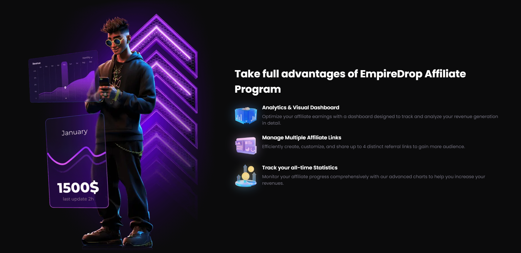 - Affiliate Program: If you invite friends to play on EmpireDrop, you can earn commissions on their box openings. This is a great way to build up your balance and have more opportunities to unbox luxury bags like the Burberry or the stylish Jacquemus Chiquito.