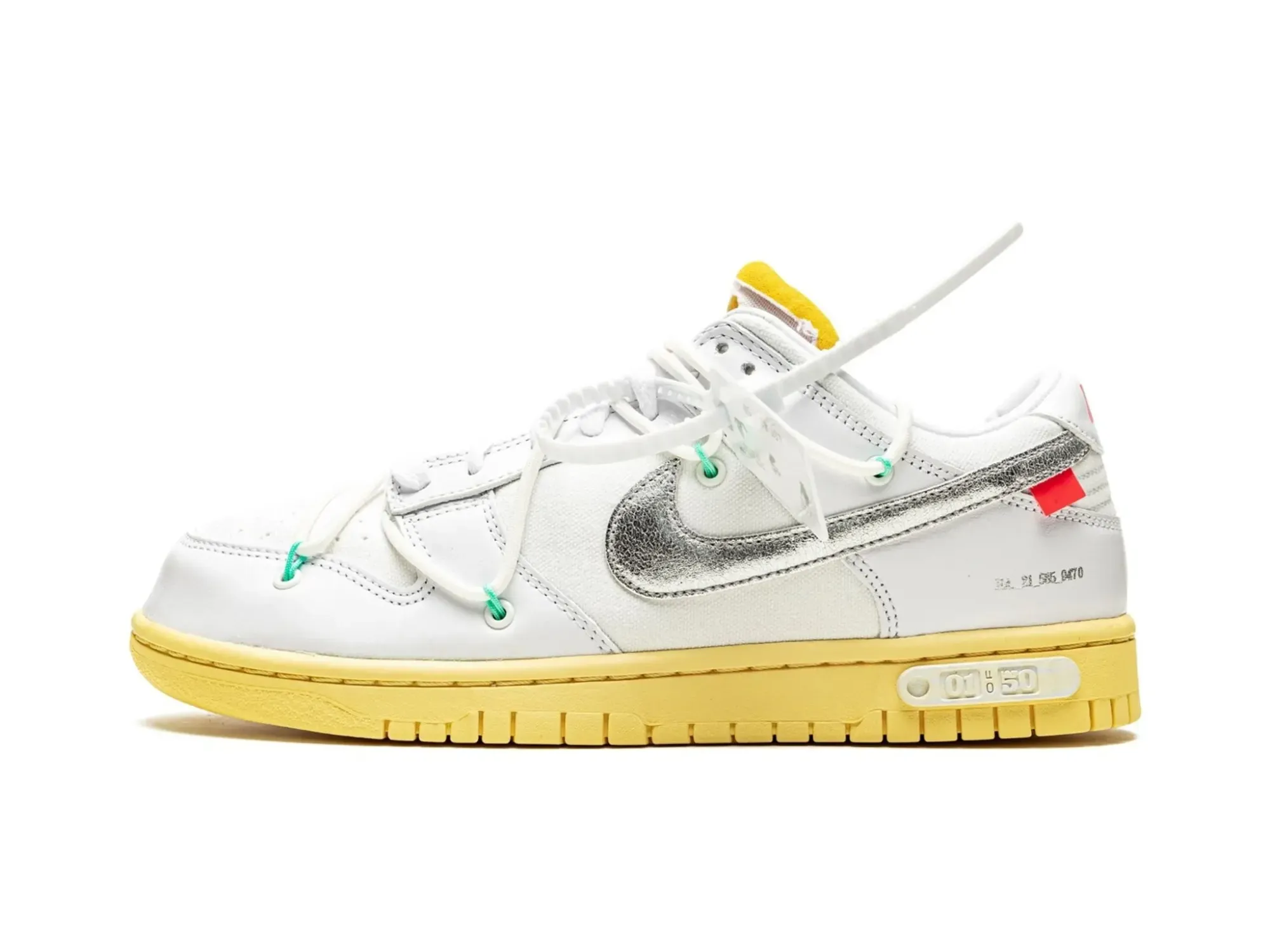 Virgil Abloh's Nike x Off-White Dunk Low Lot 1 was part of a massive 50-colorway release in 2021. Out of all 50 pairs, Lot 1 stood out due to its predominantly white and grey tones. Like the rest of the collection, Lot 1 features the signature Off-White detailing, including the famous zip tie and exposed foam. With only a limited quantity available, these off-white sneakers are a must-have for any serious collector, with prices continuing to climb.